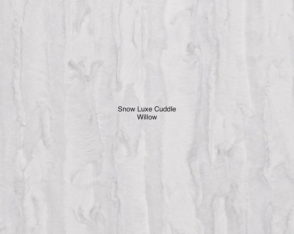 Shannon Fabrics' Luxe Cuddle® Willow is a solid-colored, 100% polyester minky plush fabric with a unique embossed texture. It's designed to mimic the softness of real fur and is often used for making plush items, blankets, and even some apparel. The Willow collection is similar to their Forest Fox collection but offers a solid color option with an embossed texture.